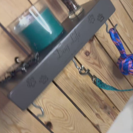 Each order comes with easy-to-use installation instructions plus the hardware needed. Comes with 3 silver hooks installed to hang all of your fur baby accessories.